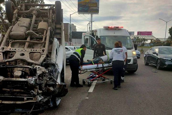 Un aparatoso hecho de tránsito se registró la tarde de este sábado, sobre el Libramiento de Morelia, donde una camioneta volcó tras un aparente choque y terminó por aplastar parcialmente a un taxi.