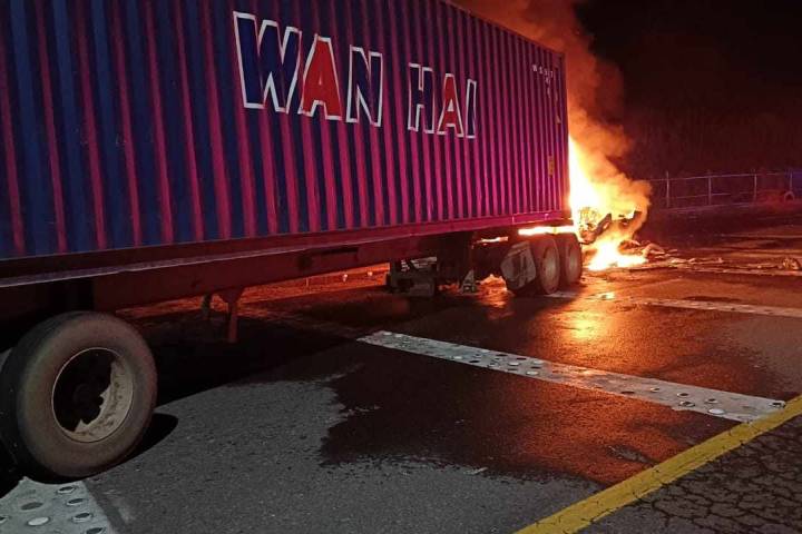 Un auto chocó contra un camión de carga a escasos metros de la caseta de cobro de Las Cañas, sobre la autopista Siglo XXI, lo que derivó en el incendio de la cabina del tráiler, dejando como saldo cuantiosos daños materiales.