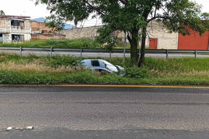 Un vehículo se salió de la carpeta asfáltica y cayó anuna cuneta del dren pluvial, la cual divide los carriles de la carretera Morelia-Pátzcuaro, informaron autoridades policiales.