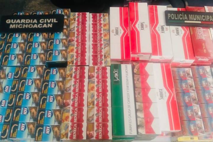 Agentes de la Secretaría de Seguridad Pública (SSP) y de la Policía Municipal de Jacona, aseguraron mil 349 cajetillas de cigarros apócrifos; hay dos personas detenidas por su probable relación en delitos contra la salud.