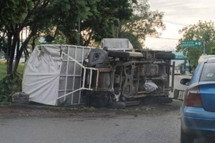 La tarde de este domingo, un camión de carga volcó cuando circulaba sobre la autopista Siglo XXI, cerca de la desviación a Uruapan, resultando herido su conductor.