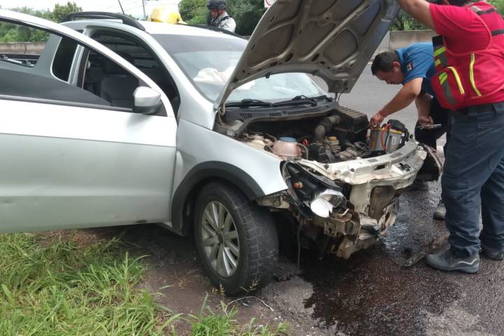 Trascendió que el automotor acabó accidentado frente al Palacio Municipal y corresponde a un Volkswagen Jetta de Color Blanco, mismo que terminó con el frente destrozado. Algunas personas al observar lo sucedido solicitaron ayuda.