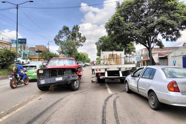 Tres vehículos protagonizaron un choque sobre la avenida Madero Poniente de Morelia, accidente que solo dejó daños materiales y el cual, a decir de testigos, fue ocasionado por una transeúnte, quien de manera imprudente se atravesó la vialidad en un área donde hay dos Puentes peatonales.