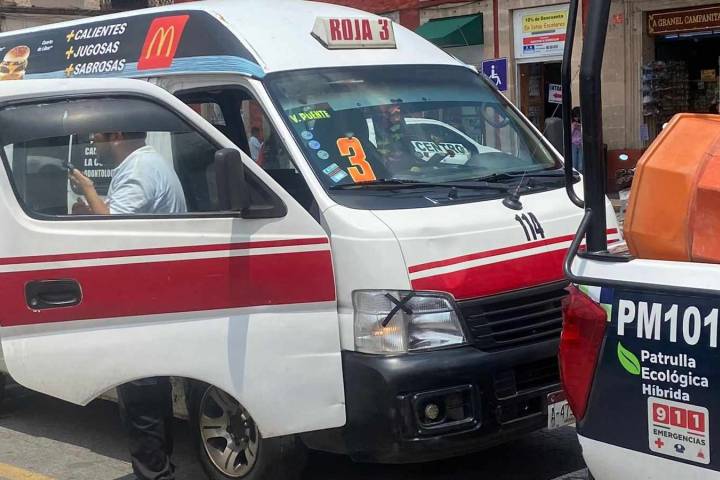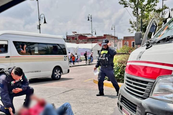 Una transeúnte resultó lastimada tras ser impactada por una combi de la Ruta Roja 3, esto en el Centro Histórico de Morelia, trascendió en la labor periodística.
