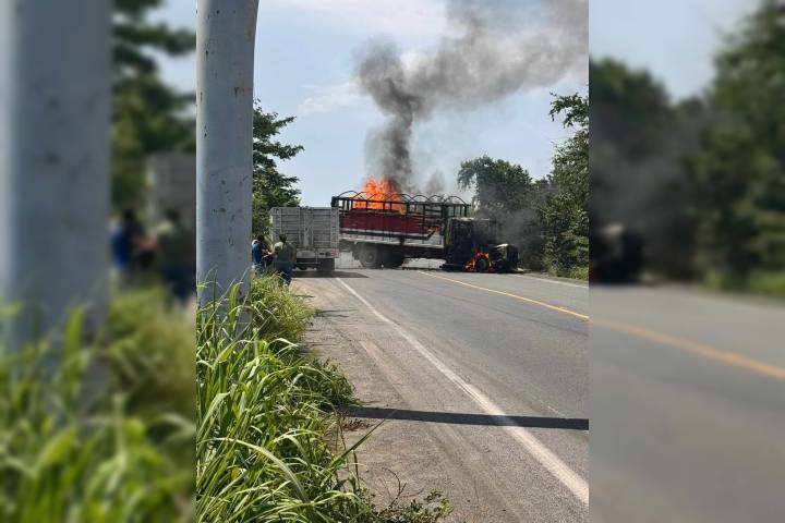 Delincuentes desconocidos se apoderaron de un camión de carga que atravesaron y quemaron sobre el puente Coahuayana, ya en territorio de municipio de Tecomán, Colima.