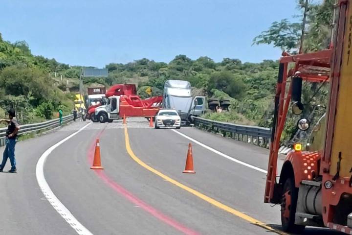 Se apreció que el tractocamión chocó contra la barrera metálic... Ver más...