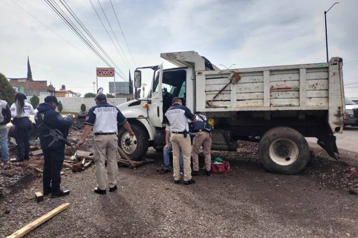 NOTICIAS 31/07/2024Camión tipo volteo se accidenta en las inmediaciones de Villas del Pedregal