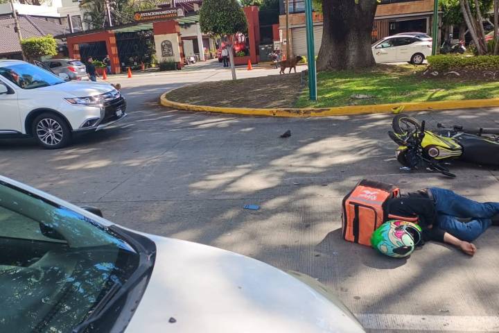 Un joven que laboraba como repartidor de comida resultó con lesiones luego de verse involucrado en un accidente vial registrado sobre el Paseo Lázaro Cárdenas, a la altura del fraccionamiento Huertas del Cupatitzio, trascendió en la labor noticiosa.