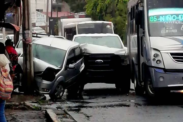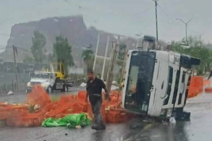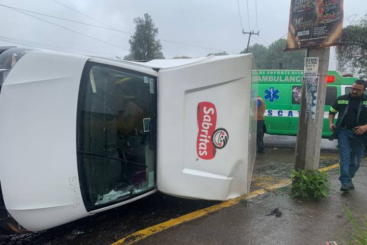 El accidente se registró al mediodía de este jueves, cuando la camioneta, una Nissan, de color blanco, circulaba con rumbo Pemex y al llegar a la esquina con la calle Villamar volcó, al parecer debido al exceso de velocidad al suelo mojado.