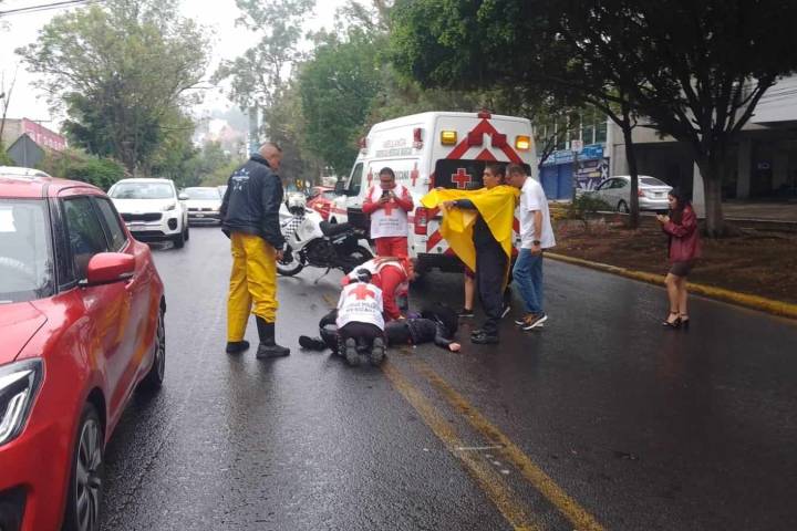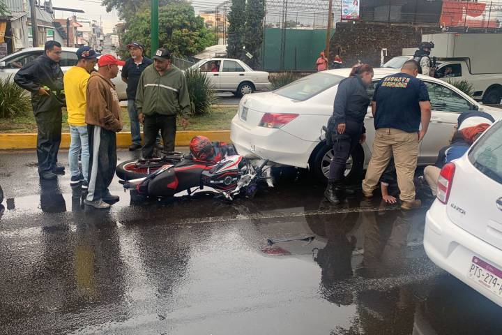 Fue la tarde de este jueves, cuando el tripulante de la moto circulaba con rumbo a la Quinta y con el asfalto mojado perdió el control e impactó contra la parte trasera de un auto Honda, de color blanco, frente al monumento a Benito Juárez.