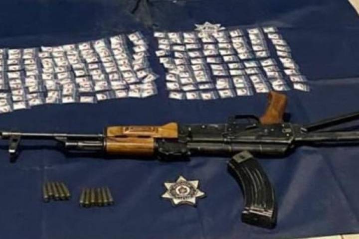Agentes de la Secretaría de Seguridad Pública (SSP) detuvieron a dos hombres en posesión de un arma de fuego y 187 envoltorios con una sustancia, al parecer metanfetamina, en el municipio de Tangamandapio.