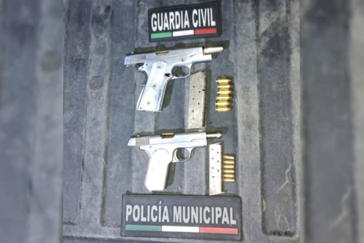 Agentes de la Secretaría de Seguridad Pública (SSP) y de la Policía Municipal de Jacona detuvieron en este municipio a cuatro hombres en posesión de dos armas de fuego y aseguraron dos vehículos en los que viajaban.