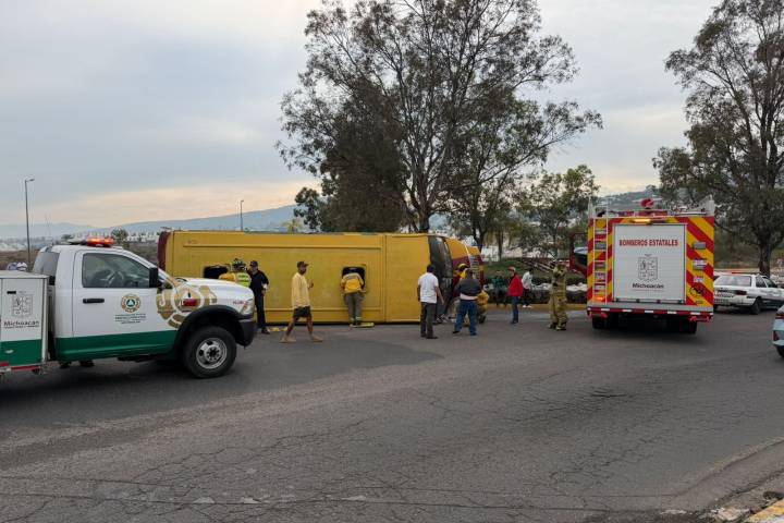 NOTICIAS 20/01/2026Camión Ruta Industrial vuelca tras chocar contra glorieta en Tres Marías; hay varios heridos Un camión de la Ruta Industrial volcó tras chocar contra una barrera de piedras colocada en una glorieta del Boulevard Alfredo Zalce, en la zona de Tres Marías, al oriente de Morelia; el incidente dejó al menos 12 personas lesionadas, informaron fuentes policiales y de rescate.