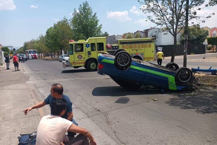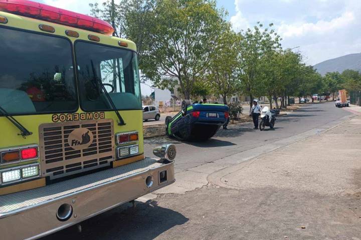 El accidente se registró la tarde de este sabado, en la avenida Villas Pedregal, cerca de la base de la Estación 3 de Bomberos de Morelia, donde algunas personas vieron el carro volteado y pidieron ayuda.