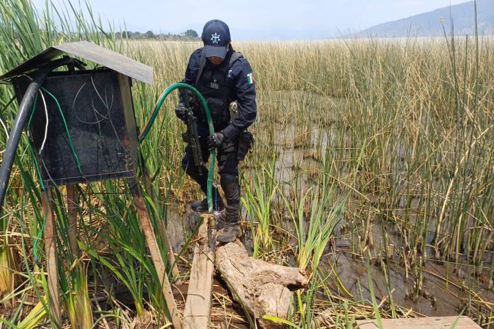 NOTICIAS 22/04/2024Guardia Civil asegura toma clandestina de agua en Oponguio Agentes de la Guardia Civil aseguraron una toma ilegal de agua en la localidad de Oponguio, en el municipio de Erongarícuaro; se calcula que se extraían del lago de Pátzcuaro 18 mil litros del recurso al día para llenado de pipas o riego de huertas en la zona.