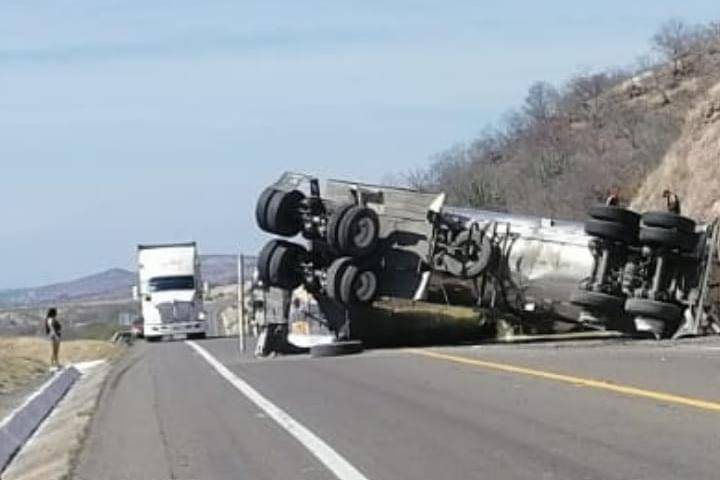 El accidente se registró la tarde de este lunes y fue reportado por automovilistas a la altura del kilómetro 173, en las cercanías de la población de San Pedro Barajas, donde la unidad siniestrada terminó recostada sobre su costado derecho.