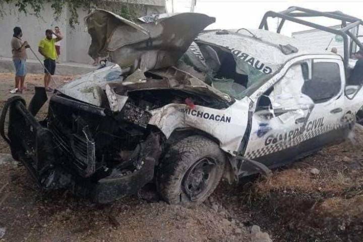 Un elemento de la Guardia Civil resultó herido al momento de que la patrulla en la que iba se accidentó este día en la carretera Apatzingán-Cuatro Caminos, en este municipio de Parácuaro.