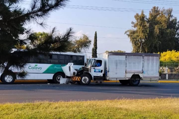 Dos personas lesionadas, una de ellas prensada, dejó como saldo el choque de un camión de una empresa repartidora de agua purificada y un autobús de transporte de personal, sobre el Libramiento Oriente de Uruapan, a la altura de la colonia Zumpimito.