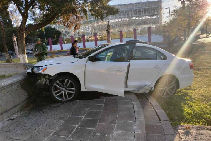 Una automovilista perdió el control de su unidad y se estrelló contra una fuente ubicada frente al cuartel de la 21 Zona Militar, en la ciudad de Morelia, trascendió la labor noticiosa.