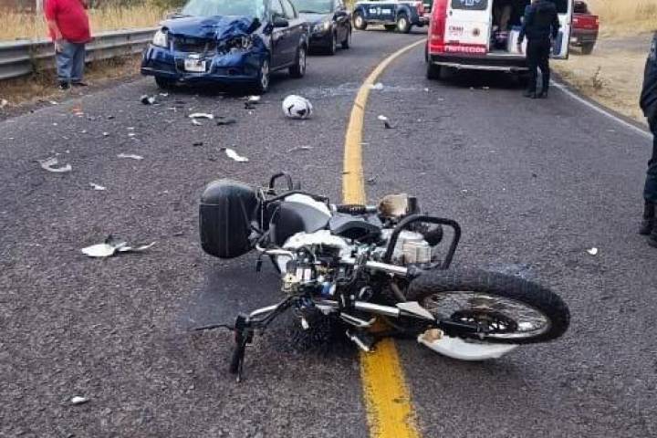 Un motociclista quedó lesionado tras chocar de frente contra un automóvil sobre la carretera libre Morelia-MaravatÃo, informaron autoridades policiales y de rescate.