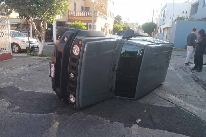 Se registra choque volcadura entre 2 vehículos en la colonia Villa Universidad, Morelia