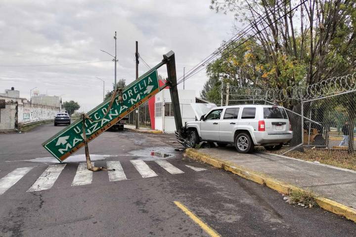 Un vehículo se estrelló contra un poste metálico de un señalamiento vial ubicado en la zona oriente de la ciudad de Morelia. Afortunadamente no hubo lesionados, solo daños materiales, informaron autoridades policiales.