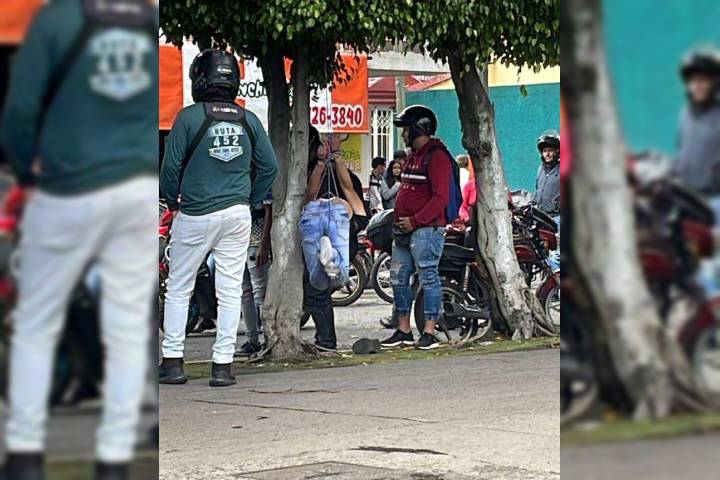 Vecinos atraparon a un sujeto al que señalaron de ser un reincidente ladrón y lo colgaron como "piñata" de un árbol, en el Fraccionamiento Villas de la Fuente de la ciudad de Uruapan.