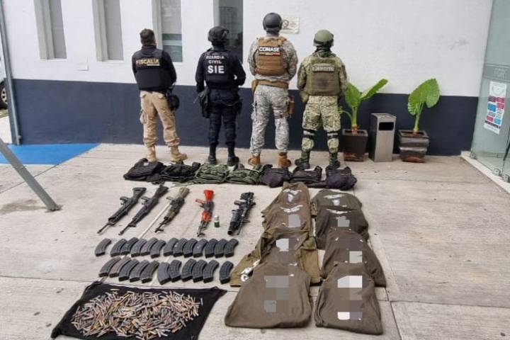 NOTICIAS 26/07/2023SIE, Ejército, Conase y FGE sacan de las calles armamento de célula delictivaResultado de una movilización operativa interinstitucional hecha en la localidad de Aputzio de Juárez, ubicada en el municipio de Zitácuaro, fue asegurado diverso armamento, equipo táctico y prendas alusivas a un grupo delincuencial, con lo cual se realizó una importante merma a dicha célula al sacar de las calles este armamento bélico.