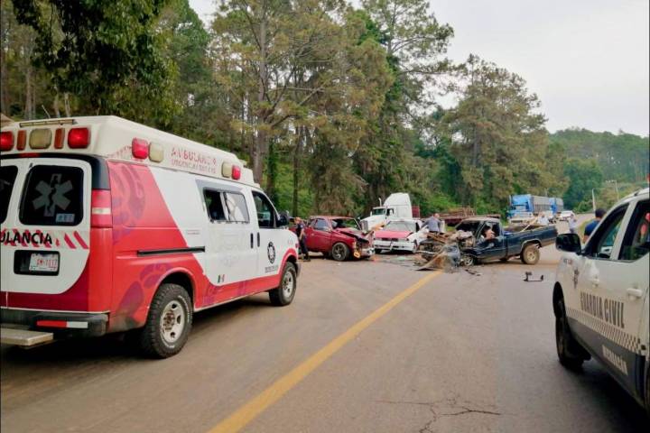 Cuatro personas resultaron heridas, tras un choque múltiple en el que participaron dos camionetas y un vehículo de alquiler sobre la carretera Tacámbaro ? Yoricostio, donde la circulación fue cerrada durante las labores de auxilio.