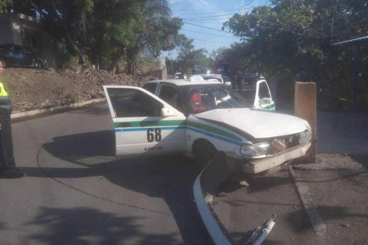 Un taxi de la agrupación Máquinas Rojas, fue abandonado luego de un aparatoso choque, en la colonia Lomas de Palmira, perteneciente a esta demarcación de Apatzingán.