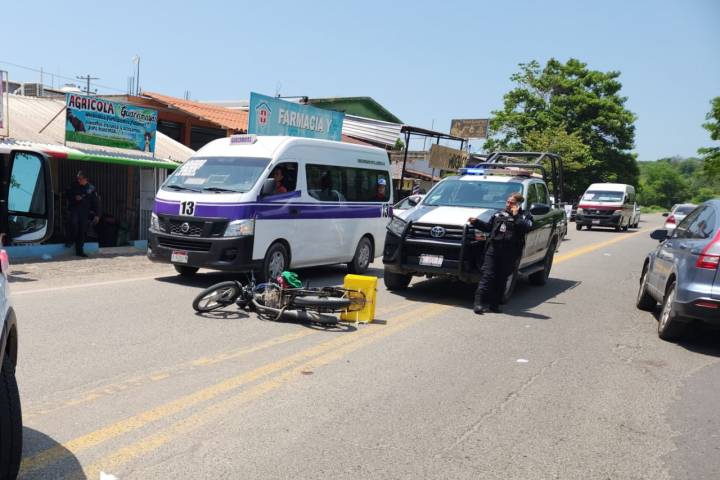 Una pareja que viajaba a bordo de una motocicleta resultó severamente lesionada, al ser impactada por una camioneta, en las inmediaciones de la tenencia de Las Guacamayas, en esta demarcación de Lázaro Cárdenas.