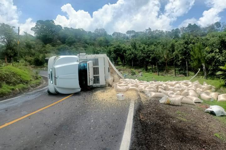 En el tramo carretero que conduce de Peribán a Buenavista, un tractocamión que transportaba maíz volcó en una curva, por lo que los agentes de vialidad acudieron a abanderar la zona, el... Ver más...