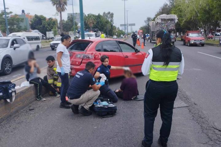 El aparatoso accidente se registró frente a la terminal de autobuses de Morelia, en el sentido de Macroplaza Estadio, hacia salida a Quiroga, donde terminó severamente dañado un auto Ibiza de color rojo, con matrícula 631-XYA.
