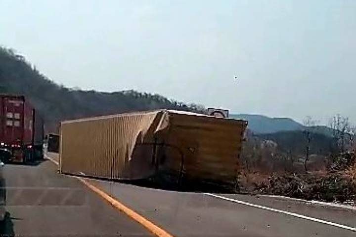 Un contenedor de carga terminó obstruyendo uno de los dos carriles de la Autopista Siglo XXI, luego de que cayera de un tráiler en el kilómetro 258, por lo que la zona fue abanderada y se permitió el paso alterno a los usuarios de dicha carretera.