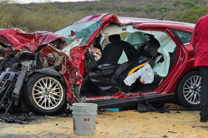 Un elemento de la Guardia Nacional de la División Seguridad en Carreteras e Instalaciones, quien se encontraba franco, sufrió algunas fracturas y lesiones al quedar prensado en su vehículo tras impactarse de frente contra una camioneta que aparentemente iba rebasando y que tras fuerte choque termino volcada.