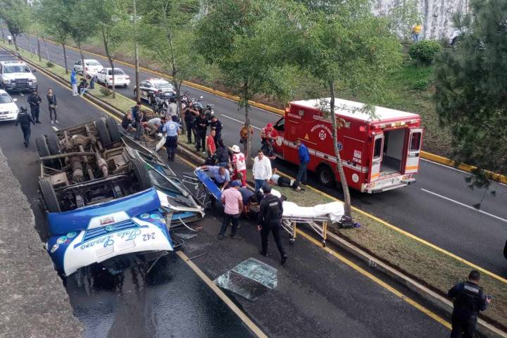 La mañana de este martes, un camión del transporte Público de Uruapan cayó de un desnivel en la lateral de la Calzada Benito Juárez, hacía los carriles centrales, y terminó aplastado sobre su toldo. Preliminar hay 10 personas heridas.