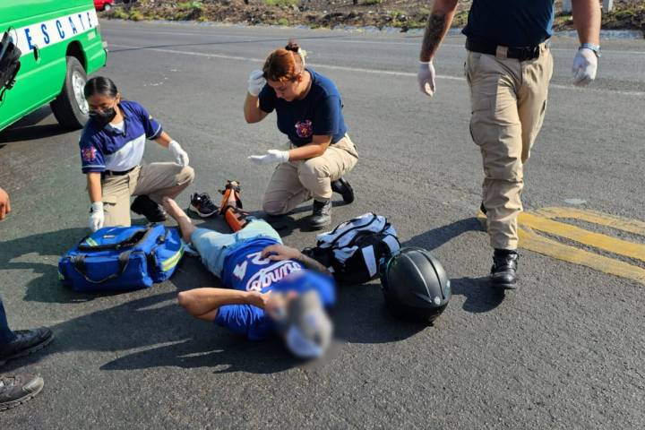 El aparatoso accidente se registró la mañana de este miércoles, en la carretera Zamora-Morelia justo en el entronque del Libramiento Sur, hasta donde llegaron paramédicos de Rescate para auxiliar al lesionado.
