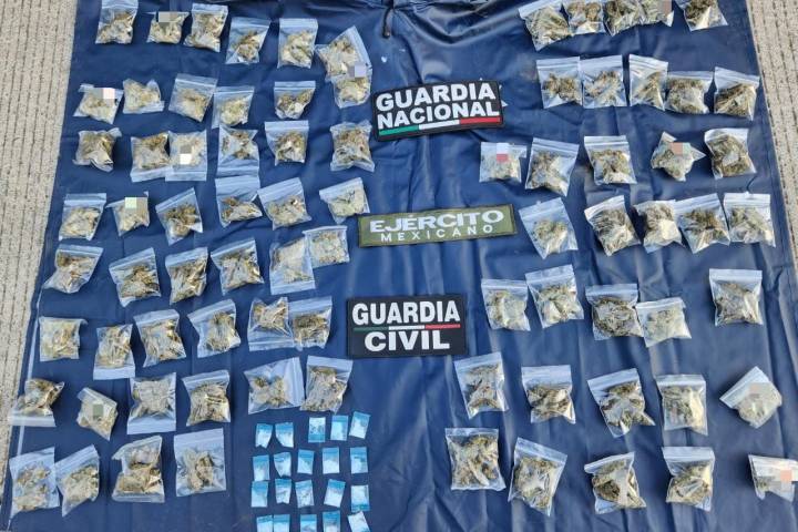 Los efectivos de las SecretarÃas de Seguridad Pública (SSP) y de la Defensa Nacional (Sedena), en colaboración con la Guardia Nacional (GN); detuvieron a tres hombres y decomisaron 82 envoltorios con hierba verde y seca, al parecer marihuana y 20... Ver más...