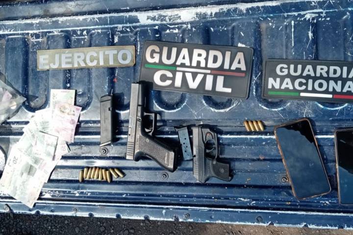 NOTICIAS 31/05/2023SSP, Sedena y GN detienen a 4 personas y aseguran 2 armas de fuego; en TuzantlaLas acciones operativas interinstitucionales en el municipio de Tuzantla, permitieron a los efectivos de las SecretarÃas de Seguridad Pública (SSP) y de la Defensa Nacional (Sedena), en equipo con la Guardia Nacional (GN); detener a tres hombres y una mujer en posesión de dos armas de fuego y municiones.