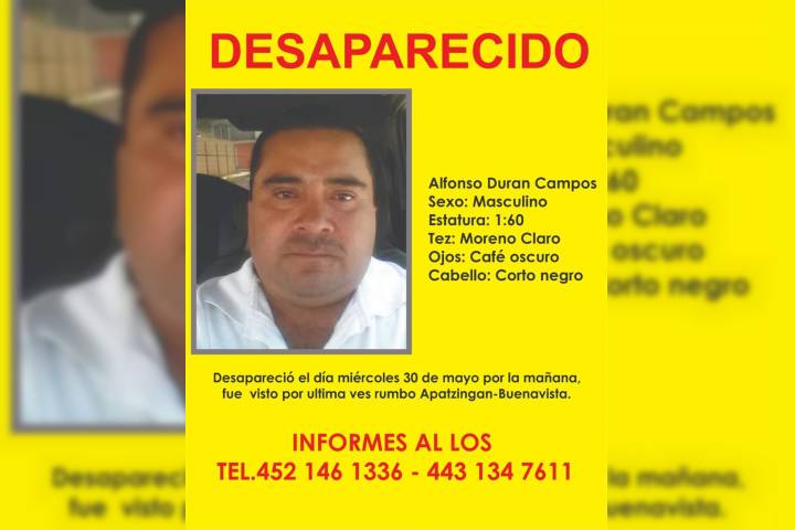 Un taxista adherido a la organización Satélite desapareció en circunstancias aún no determinadas, sin que hasta el momento se tenga algún indicio de su paradero, mientras que su unidad fue localizada abandonada en el municipio de Apatzingán.