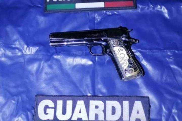 Al realizar patrullajes de prevención y vigilancia en la colonia Lázaro Cárdenas de esta demarcación, los oficiales de la Guardia Civil aseguraron a una persona del sexo masculino y una pistola calibre .45 milímetros.