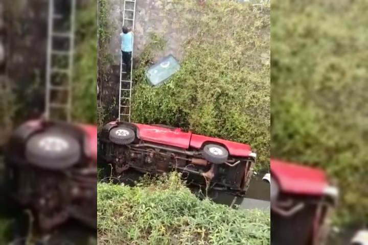 El percance vial tuvo lugar sobre la avenida de Las Islas, donde una camioneta tipo Pick Up de color rojo, se precipitó al fondo del afluente que divide los carriles de ida y vuelta, para terminar volcada sobre su costado izquierdo, ... Ver más...