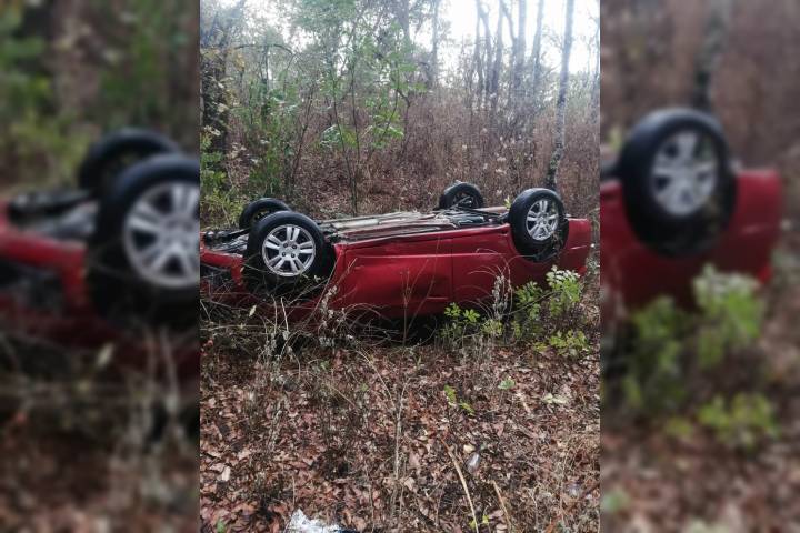 Un vehículo compacto volcó cuando circulaba sobre la carretera Morelia-Quiroga, por fortuna el conductor resultó ileso, informaron autoridades policiales.