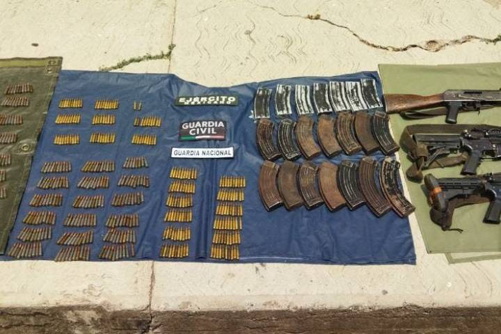 NOTICIAS 04/05/2023SSP, Sedena y GN aseguran arsenal con 610 municiones en AguilillaDerivado de las tareas policiales que forman parte de la Base de Operaciones Interinstitucionales (BOI) en el municipio de Aguililla, los efectivos de las Secretarías de Seguridad Pública (SSP) y de la Defensa Nacional (Sedena), en equipo con la Guardia Nacional (GN); encontraron y aseguraron armamento y municiones.