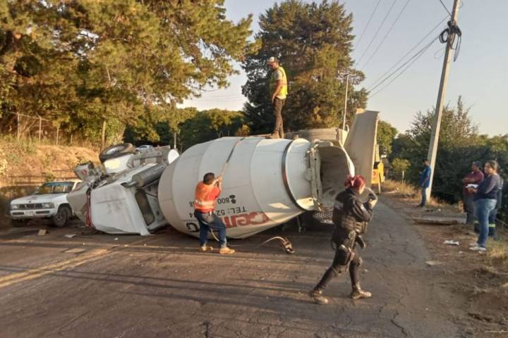 NOTICIAS 10/03/2023Vuelca camión revolvedor de concreto en "La Curva de Los Quemados"Un camión revolvedora de concreto volcó sobre la carretera Uruapan ? Carapan, sin que por fortuna se reportaran personas heridas, sin embargo la unidad terminó obstruyendo ambos carriles ocasionando el cierre toral de la rúa.