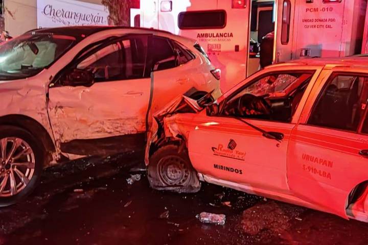 NOTICIAS 10/03/2023Aparatoso choque en la Uruapan ? Paracho; hay 8 heridosUn total de 8 personas heridas, dos de ellas de gravedad, fue el saldo que dejo un choque entre un taxi de la línea conocida como "Mirindos" y una camioneta particular, sobre la carretera Uruapan-Paracho.