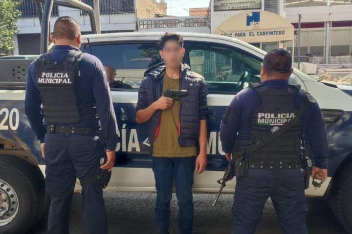 Agentes de la Dirección de Seguridad Pública Municipal detuvieron a un muchacho que portaba un arma de fuego y un inhibidor de señal GPS.