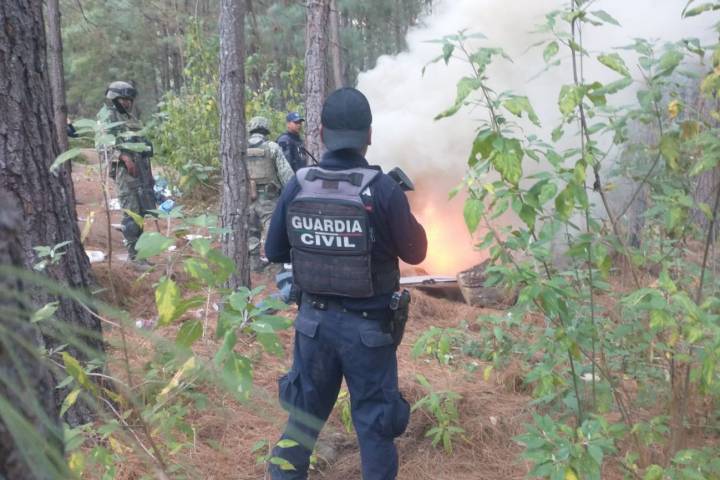 Durante los trabajos coordinados con agentes de la Secretaría de la Defensa Nacional (Sedena), y de la Guardia Nacional (GN), sobre el cerro de San And... Ver más...