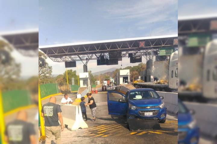 Un automóvil compacto sufrió diversos daños materiales al activarse y estrellarse contra la barrera del sistema "antieludidos" de la caseta de cobro de Taretan, sus tres tripulantes solo resultaron con golpes leves.