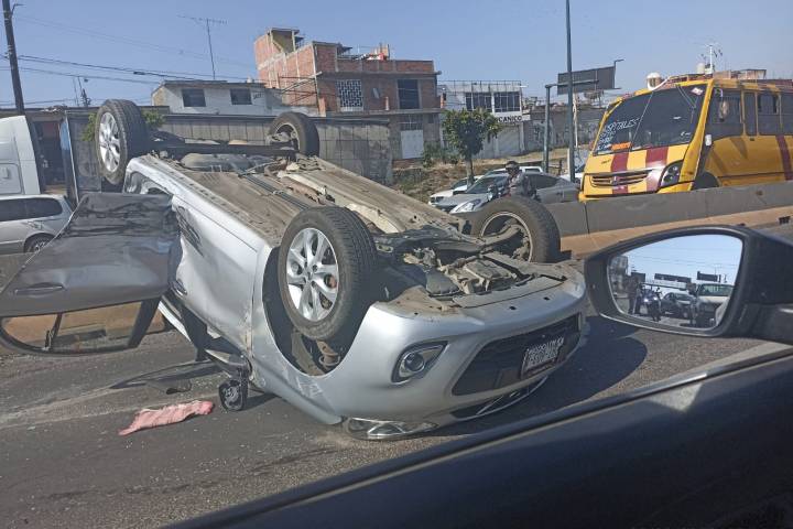 Se apreció que la unidad volcada es de la marca Nissan March, color plata, la cual estaba atravesada sobre... Ver más...